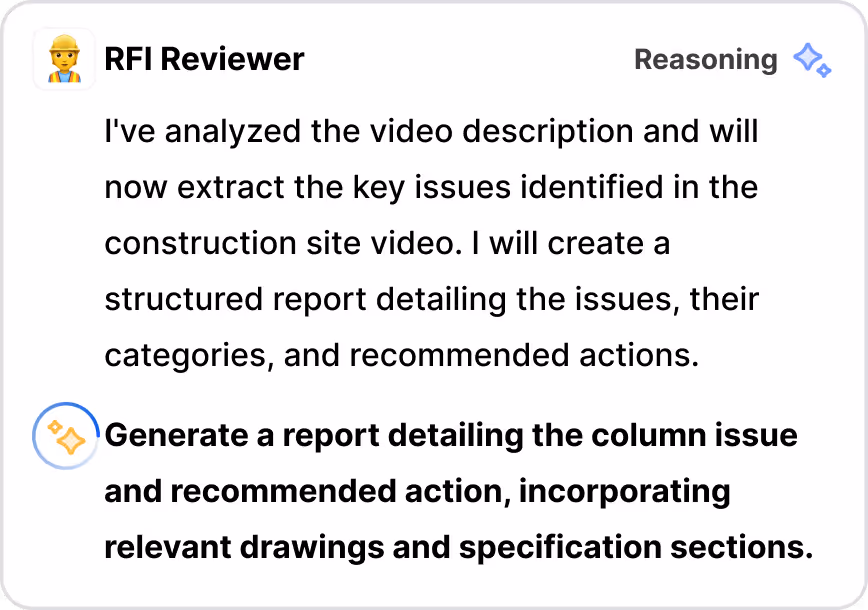 Datagrid doesn’t stop at pulling information — it interprets it. Agents go beyond language models to process text, drawings, spreadsheets, and even videos to interpret information, perform calculations, and surface what matters. Visual and analytical intelligence combine so you can get real work done.